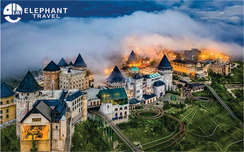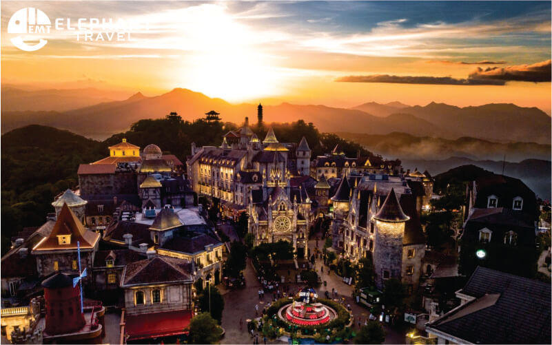 Các công trình kiến trúc độc đáo: Bà Nà Hills là nơi tụ tập nhiều công trình kiến trúc độc đáo, mang đậm dấu ấn của nhiều nền văn hóa khác nhau trên thế giới. Đáng chú ý nhất là Làng Pháp, một khu du lịch được xây dựng theo phong cách kiến trúc châu Âu cổ điển, với vẻ đẹp sang trọng. Ngoài ra, Bà Nà Hills còn có nhiều công trình nổi tiếng khác như Cầu Vàng, Lâu đài Mặt Trăng, và Fantasy Park.